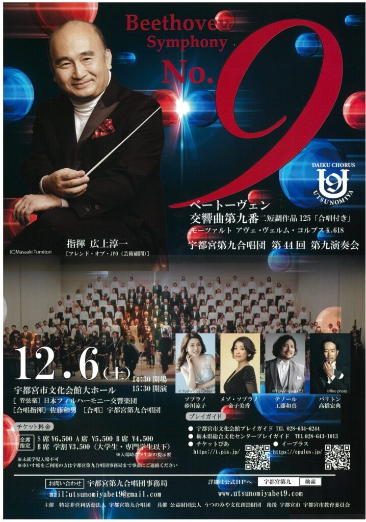 お問い合わせ | 主催:特定非営利活動法人 宇都宮第九合唱団 共催:公益財団法人 うつのみや文化創造財団 後援:宇都宮市 宇都宮市教育委員会 宇都宮第九合唱団事務局 www.utsunomiyabet9.com ✉ utsunomiyabet9@gmail.com |