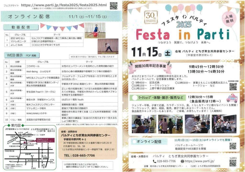 お問い合わせ先 | パルティ とちぎ男女共同参画センター ☎ 028-665-7706 HP https://www.parti.jp/ 主催 栃木県とちぎ男女共同参画センター・(公財)とちぎ男女共同参画財団 |