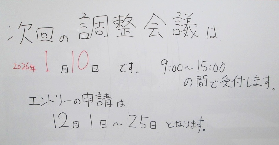 次回の調整会議は、2026年1月10日(土)に開催を予定しています。