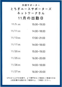 | お問い合わせ | 公益財団法人とちぎYMCA TEL:028‐624‐2546 〒320‐0041 宇都宮市松原2‐7‐42 担当:松本・菅原 |