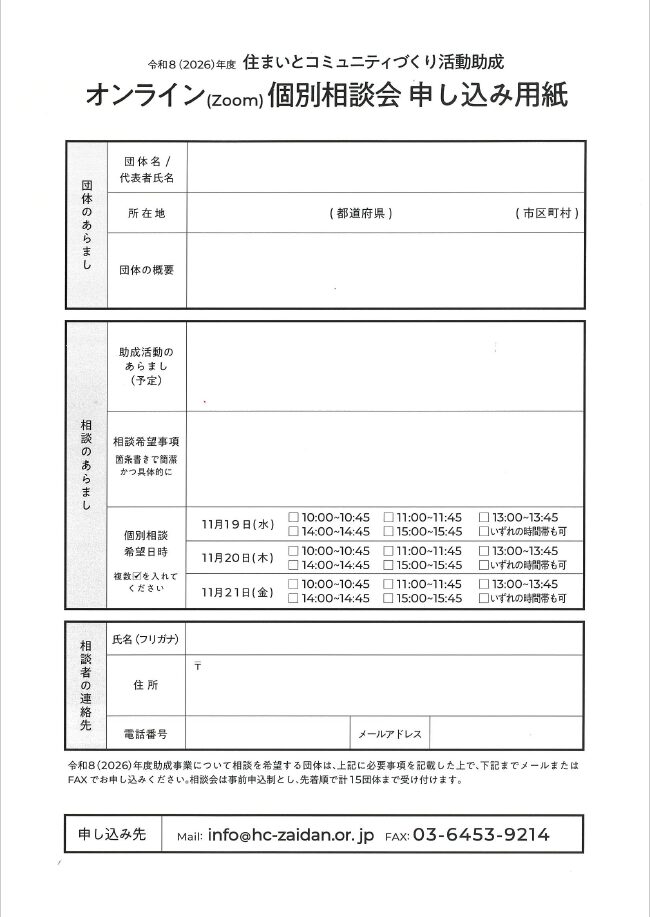 | Mail:info@hc-zaidan.or.jp | FAX:03-6453-9214 |