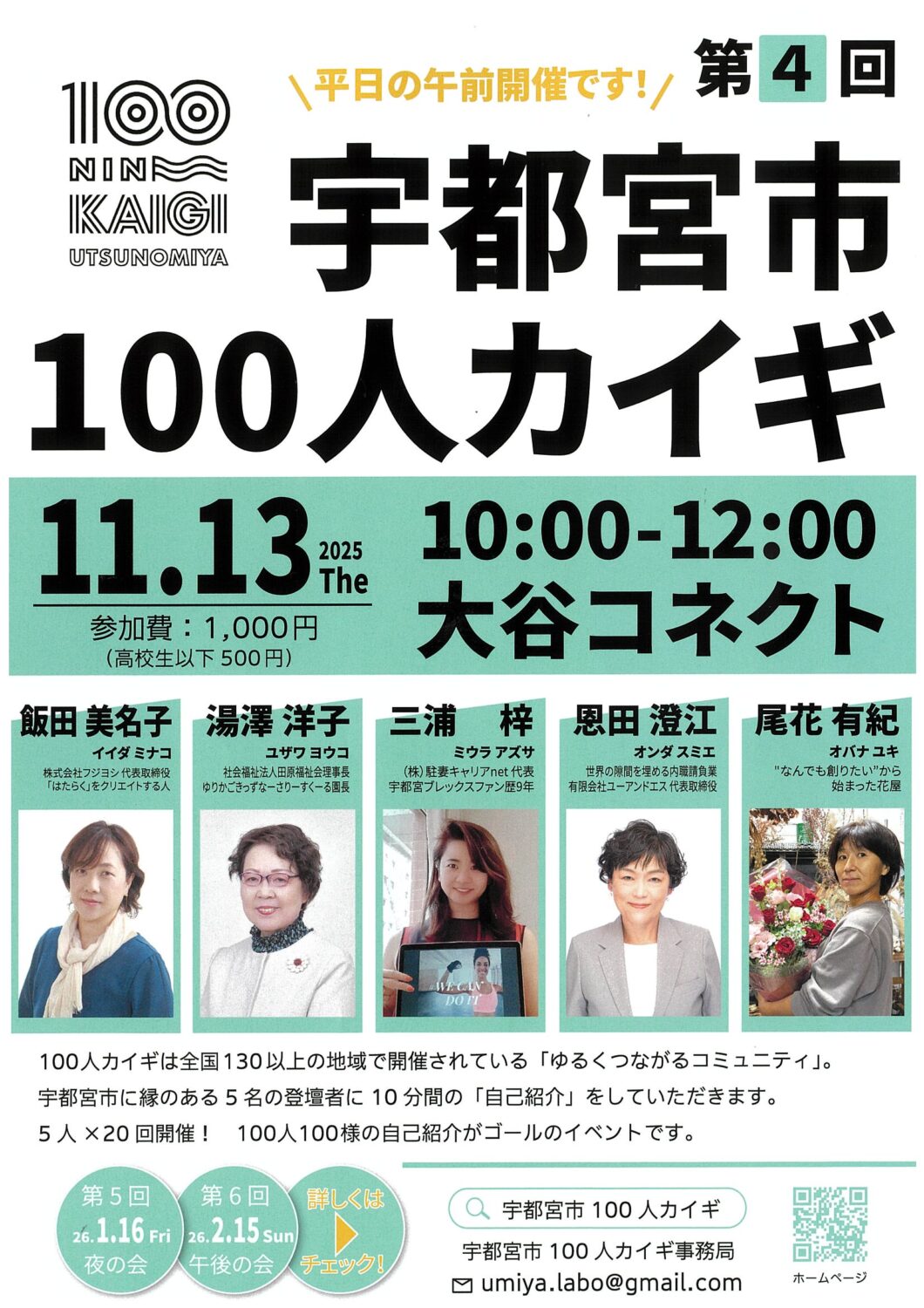 | お問い合わせ | 宇都宮市100人カイギ事務局 ✉umiya.labo@gmail.com |