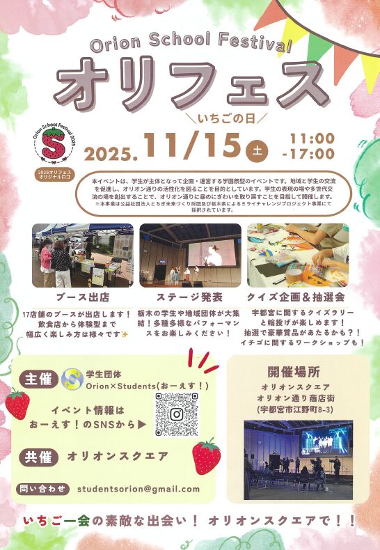 | 開催場所 | オリオンスクエア オリオン通り商店街(宇都宮市江野町8₋3) |
