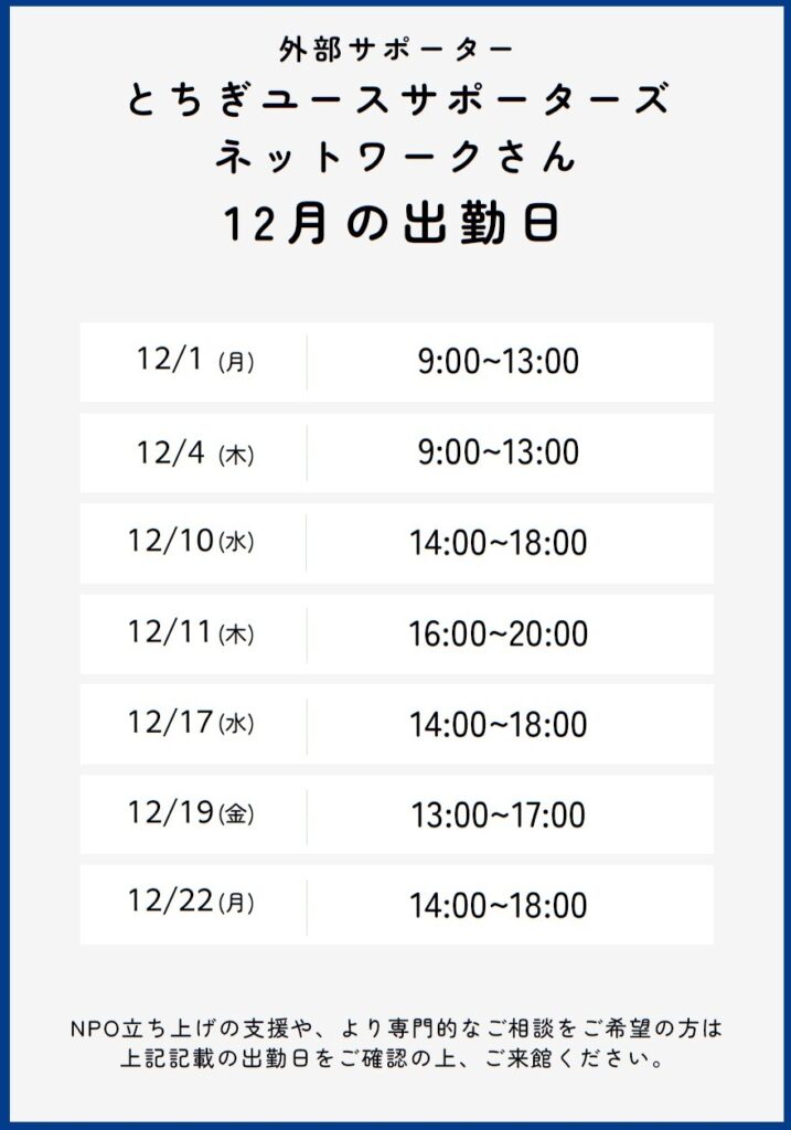外部サポーターとしてまちぴあに参画されている、NPO法人とちぎユースサポーターズネットワークさんによる、NPO法人の立ち上げや運営に関する専門相談を実施しています。