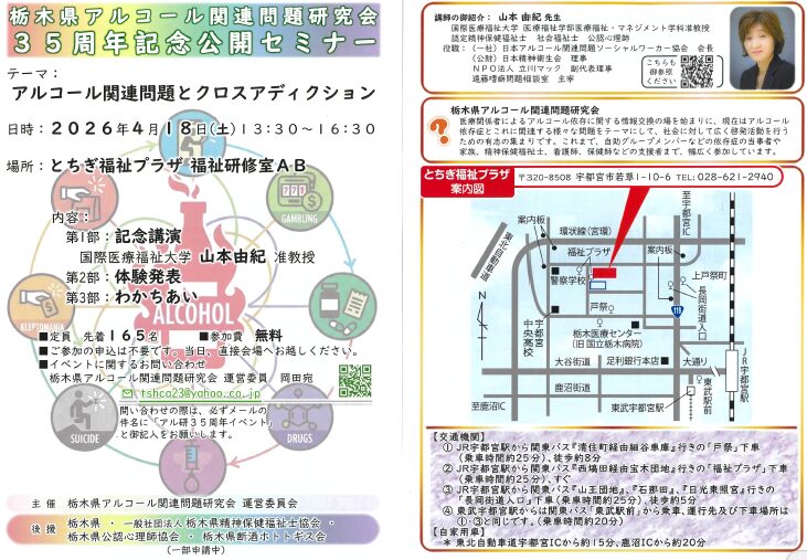 【4月18日開催】栃木県アルコール関連問題研究会「35周年記念公開セミナー」