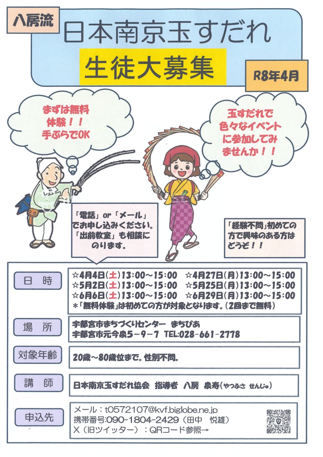 | 対象 | 20歳~80歳くらいまで。性別不問 |