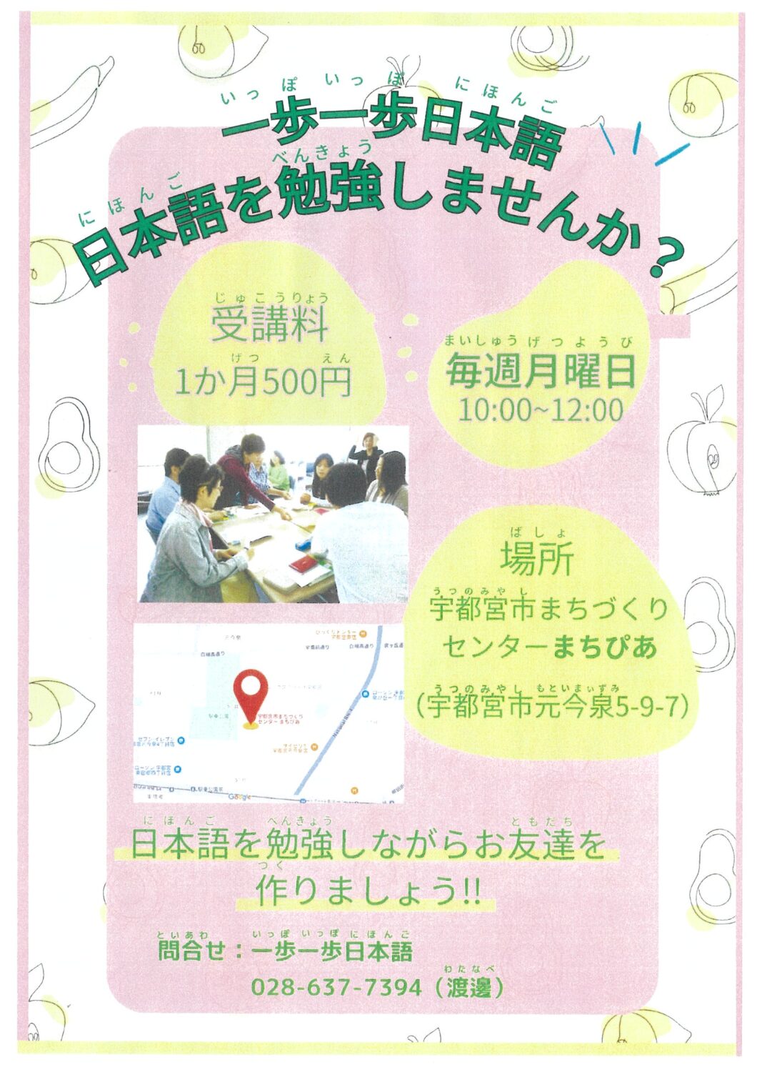 | お問合せ先 | 一歩一歩日本語 ☎ 028-637-7394 (渡邊) |