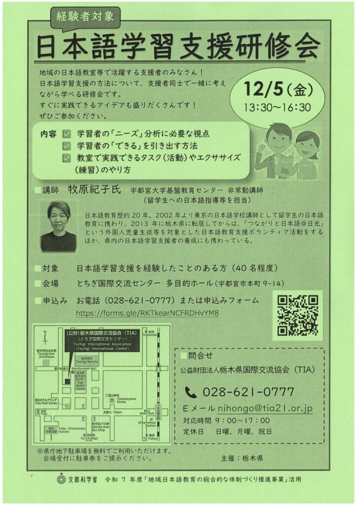 内容 地域の日本語教室等で活躍する支援者のみなさん! 日本語学習支援の方法について、支援者同士で一緒に考えながら学べる研修会です。すぐに実践できるアイデアも盛りだくさんです!ぜひご参加ください。 □学習者の「ニーズ」分析に必要な視点□学習者の... -