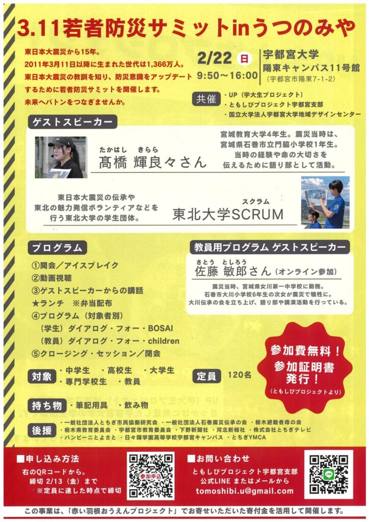 【2/22(日)開催】3.11 若者防災サミット inうつのみや