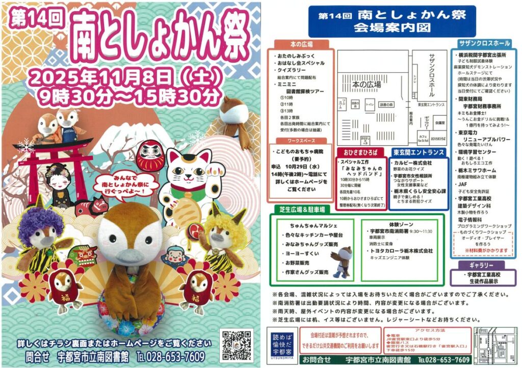 内容 日時2025年11月8日(土) 9:30~15:30 場所宇都宮市立南図書館 お問い合わせ先宇都宮市立南図書館☎ 028-653-7609 -