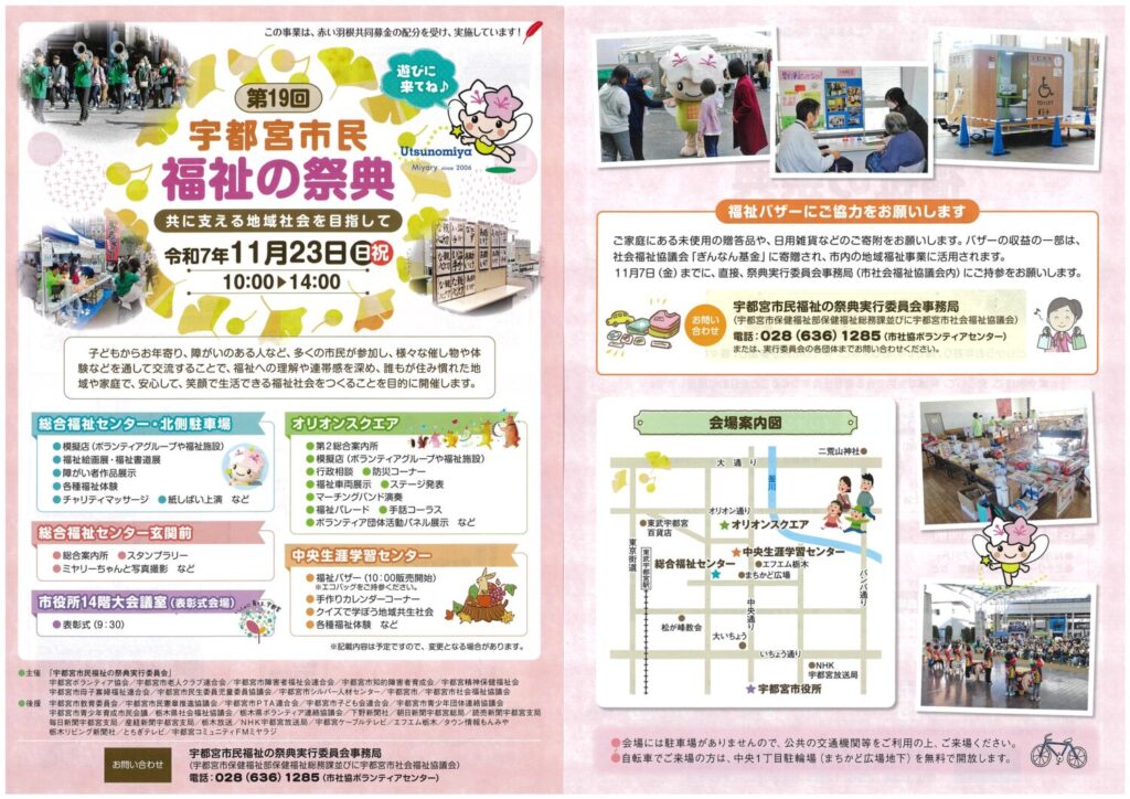 日 時 11月23日(日・祝)10:00~14:00 内容 子どもからお年寄り、障がいのある人など、多くの市民が参加し、様々な催し物や体験などを通して交流することで、福祉への理解や連帯感を深め、誰もが住み慣れた地域や家庭で、安心して、笑顔で生活できる福... -