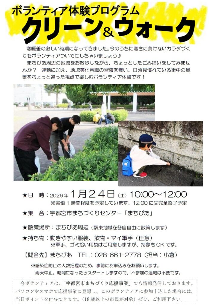 ボランティア体験プログラム クリーン&ウォーク 参加者募集中