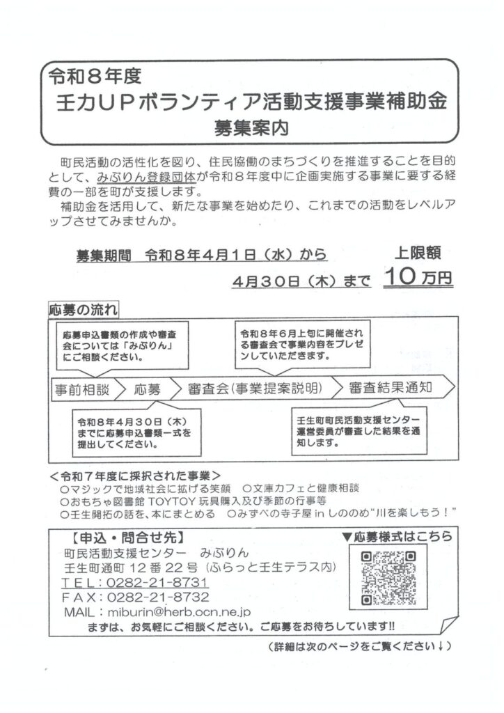 令和8年度 壬力UPボランティア活動支援事業補助金 募集案内